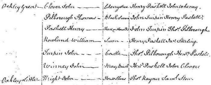The first written record we have for the pub is in the Alehouse Recognizances of 1769 when the Maybush appears licensed by John Winney. Winney is listed as a freeholder in Great Oakley in a 1763 Poll Book although it isn't clear how much property he owned.